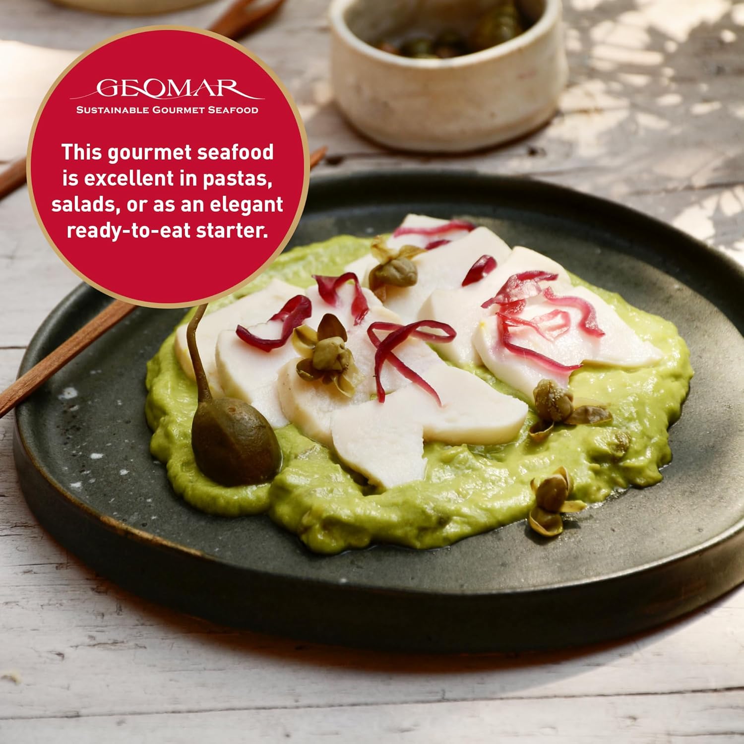 - SEASHORE TO PLATE: Geomar produces 100% of its products in our modern production facilities, controlling all stages of the process from the seashore to your plate